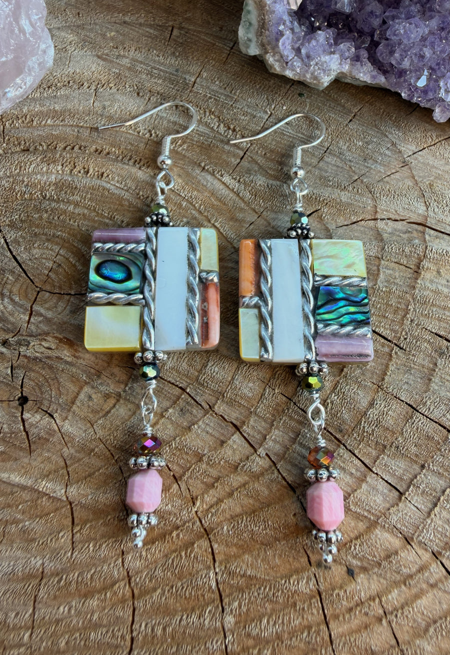 Do you love shells like I do? Anything from the water works for me. Abalone, Mother of Pearl, Conch Shell and Pink Peruvian Opals with Sterling Silver make up these long and gorgeous earrings. So darn pretty.