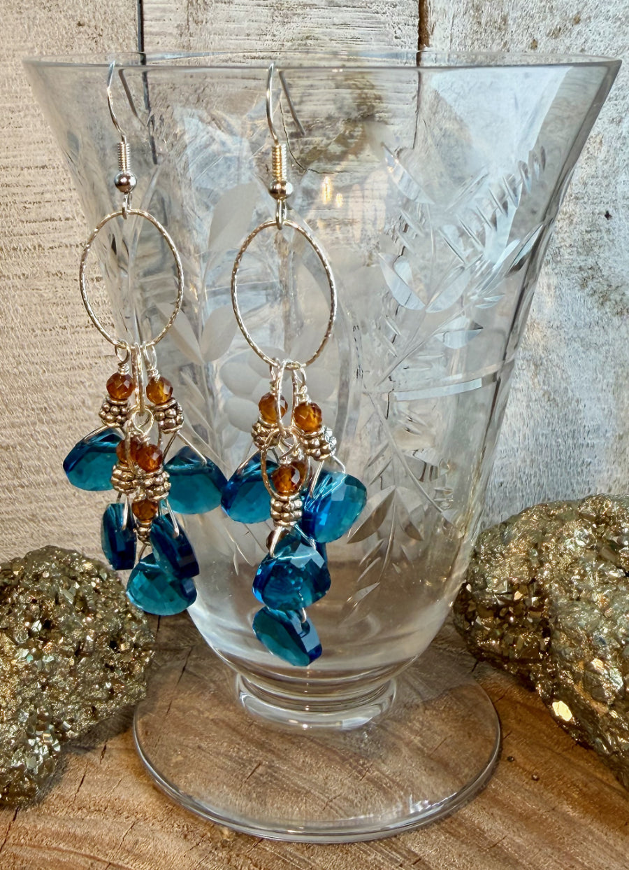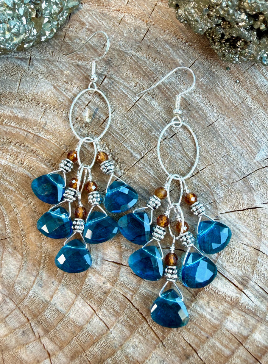 Blue Quartz and Orange Garnets come together and bring joy. How pretty are these? Hand wire-wrapped Quartz onto Sterling Silver. I added some orange in Garnets since those two colors are so complimentary. Perfect for Christmas, Hanukkah or for those who just love gems.
