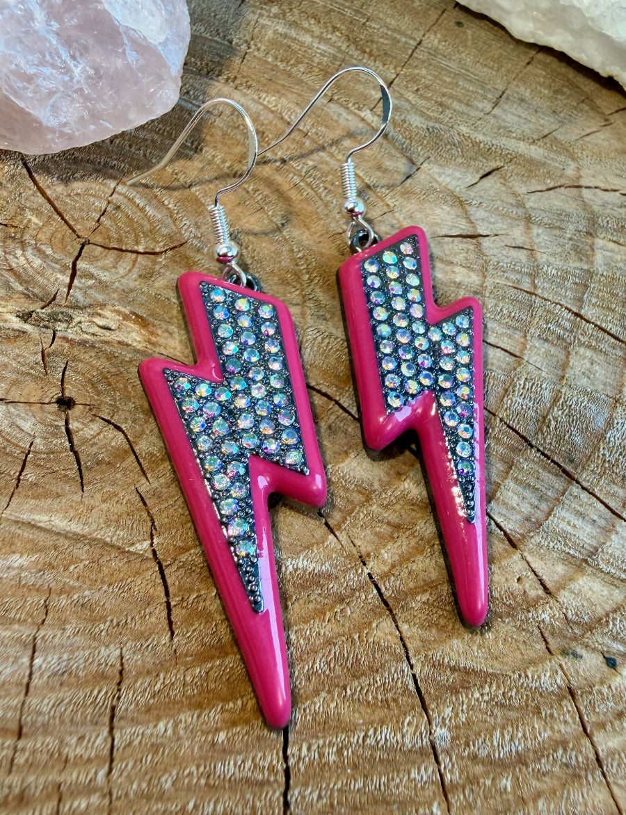 Who else is a fan of David Bowie, or Bowie? To David Bowie with these fun and quirky earrings. Base metal painted in pink with Crystals and Sterling Silver. Fun, not too big and not small. For those who like unusual and FASHION.