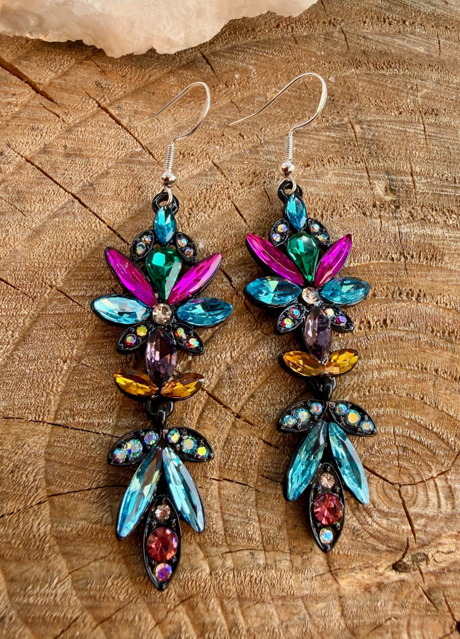 Lightweight and long but not too long. Perfect for those who love glitz. Oh so pretty and made of Rhinestones, Base Metal, and Sterling Silver.